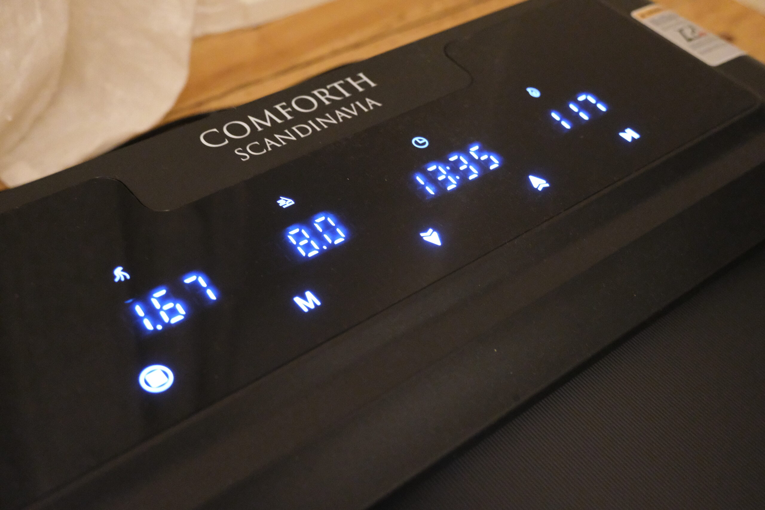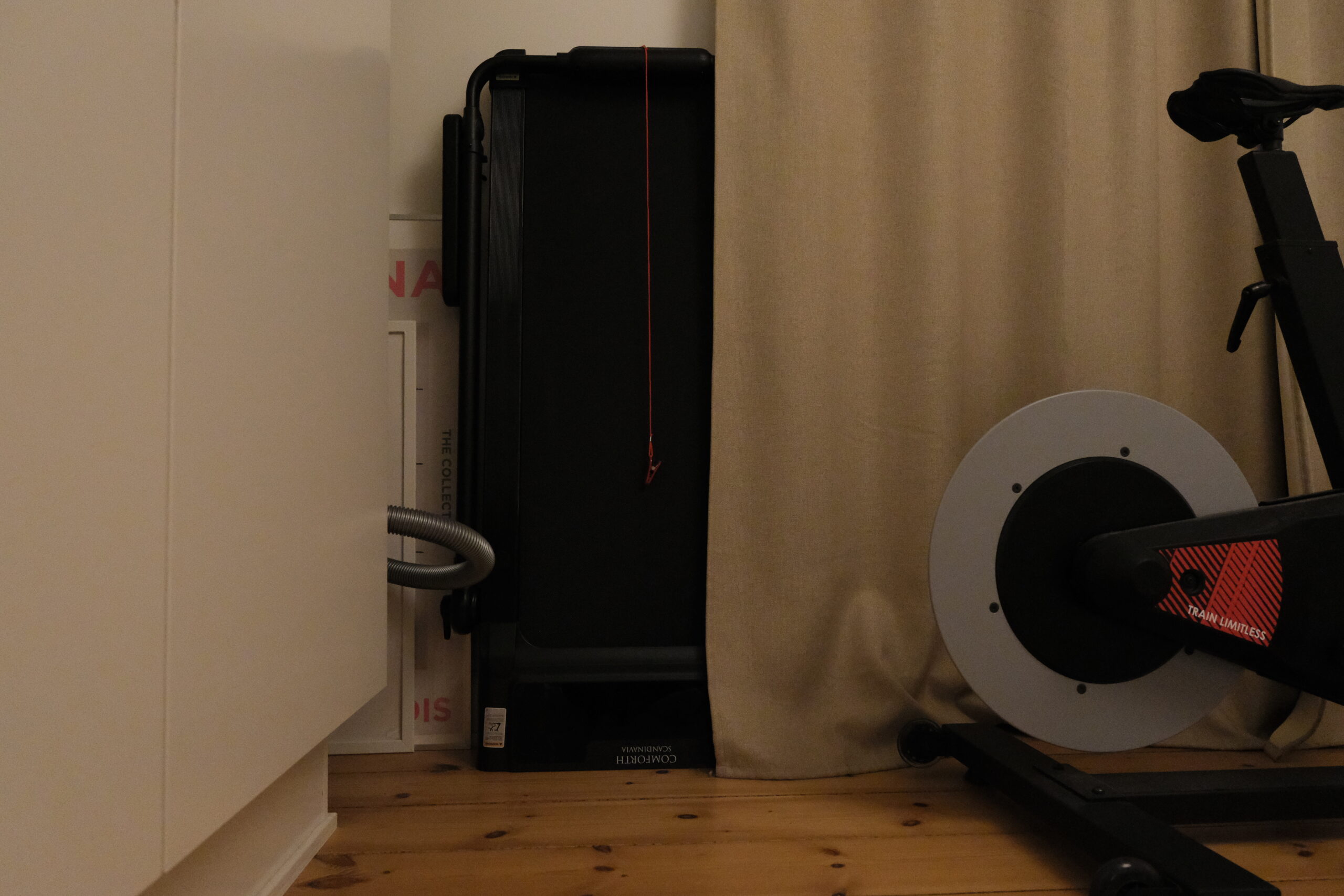 Jeg har haft mulighed for at se nærmere på MotionPro og teste funktionerne, og det første, der springer i øjnene, er hvor lidt det fylder. I modsætning til klassiske løbebånd, der ofte optager et helt rum, kan MotionPro foldes sammen til kun 15,5 cm i højden. Det betyder, at det kan skubbes ind under sengen eller gemmes væk langs en væg, når det ikke er i brug.