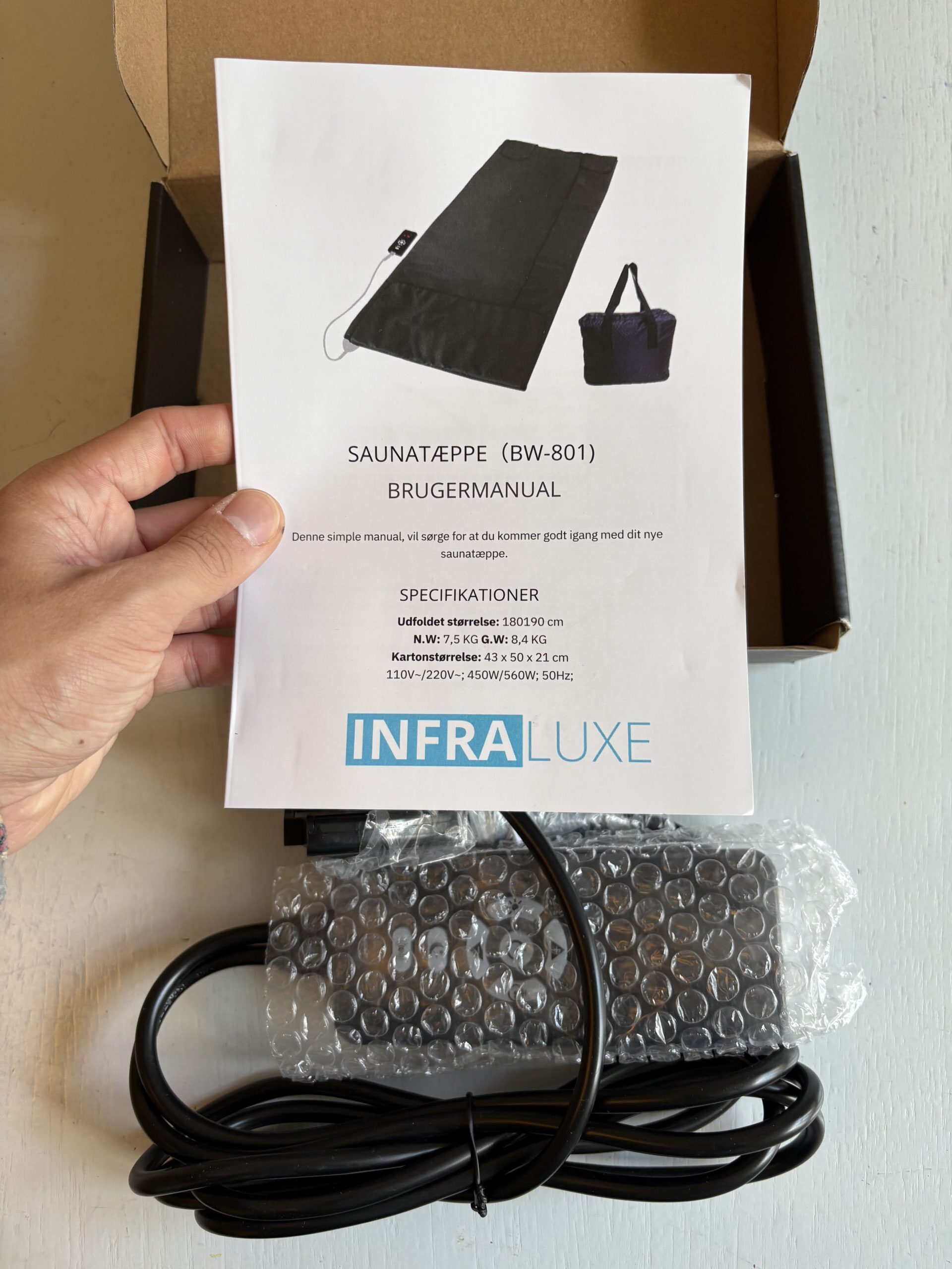Jeg har testet tæppet over en periode, og det føles lidt som at træde ind i en sauna – bare uden at skulle forlade stuen. Det er varmt, afslappende og giver en fornemmelse af ro i hele kroppen. Samtidig mærker man hurtigt den effektive varme, som løsner op i muskler og led efter hård træning eller en lang dag foran computeren.
