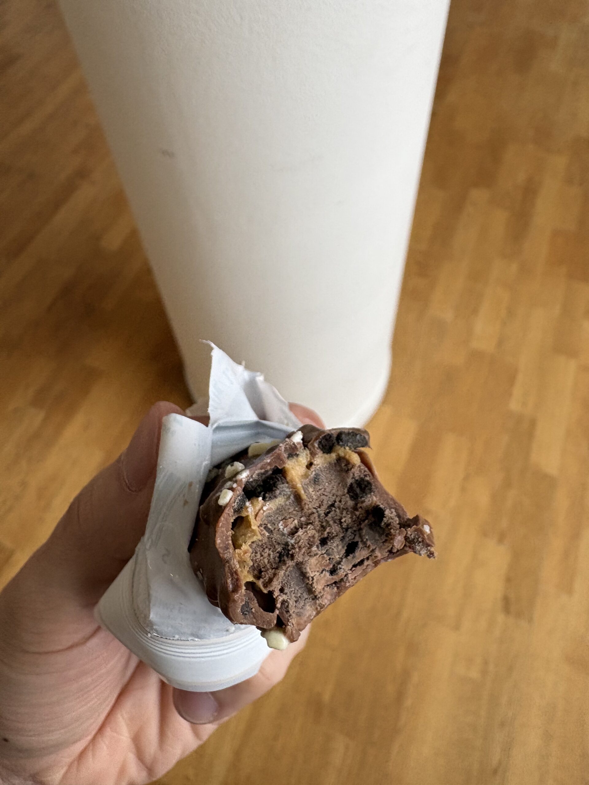 Det første, man lægger mærke til, er teksturen. Kombinationen af bløde lag, chewy karamel og sprøde proteincrispies giver mere variation end klassiske “kompakte” proteinbarer.