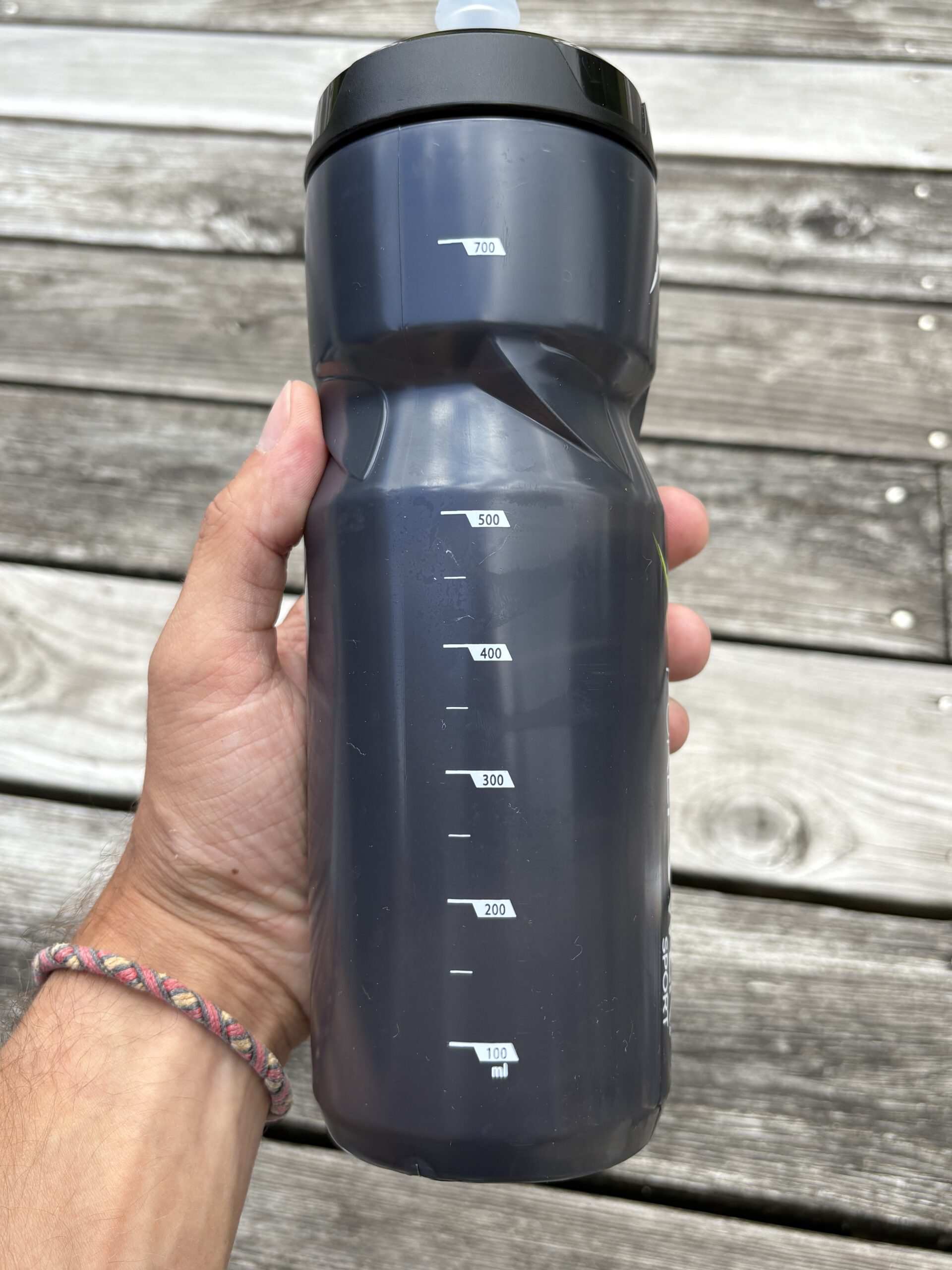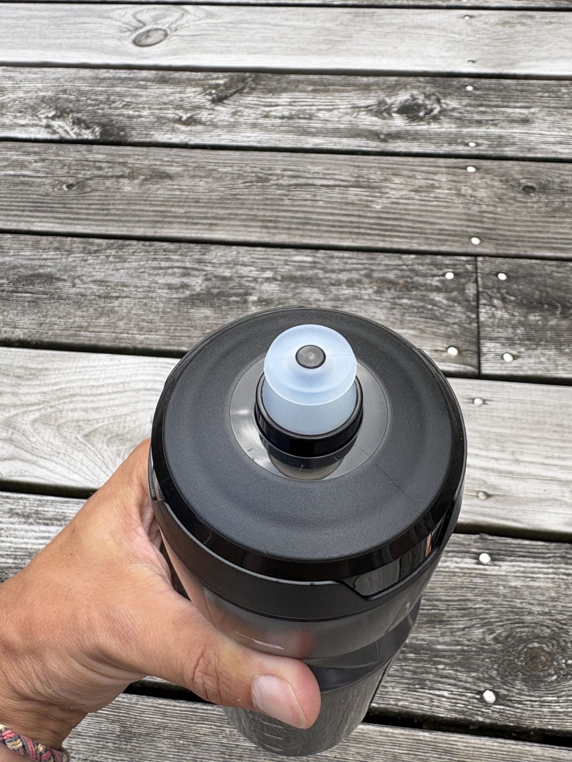 Det, jeg især har lagt mærke til, er mundstykket. Det er blødt, let at åbne/lukke og gør det muligt at drikke i farten uden problemer – både under cykling og korte pauser ved bassinkanten. Den fleksible plast gør, at flasken er nem at klemme på, hvilket er en fordel, når man er forpustet og bare skal have en hurtig tår.
