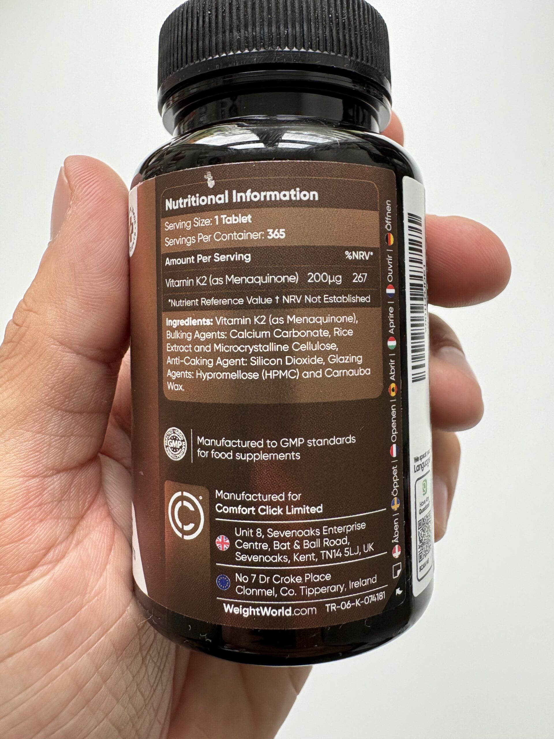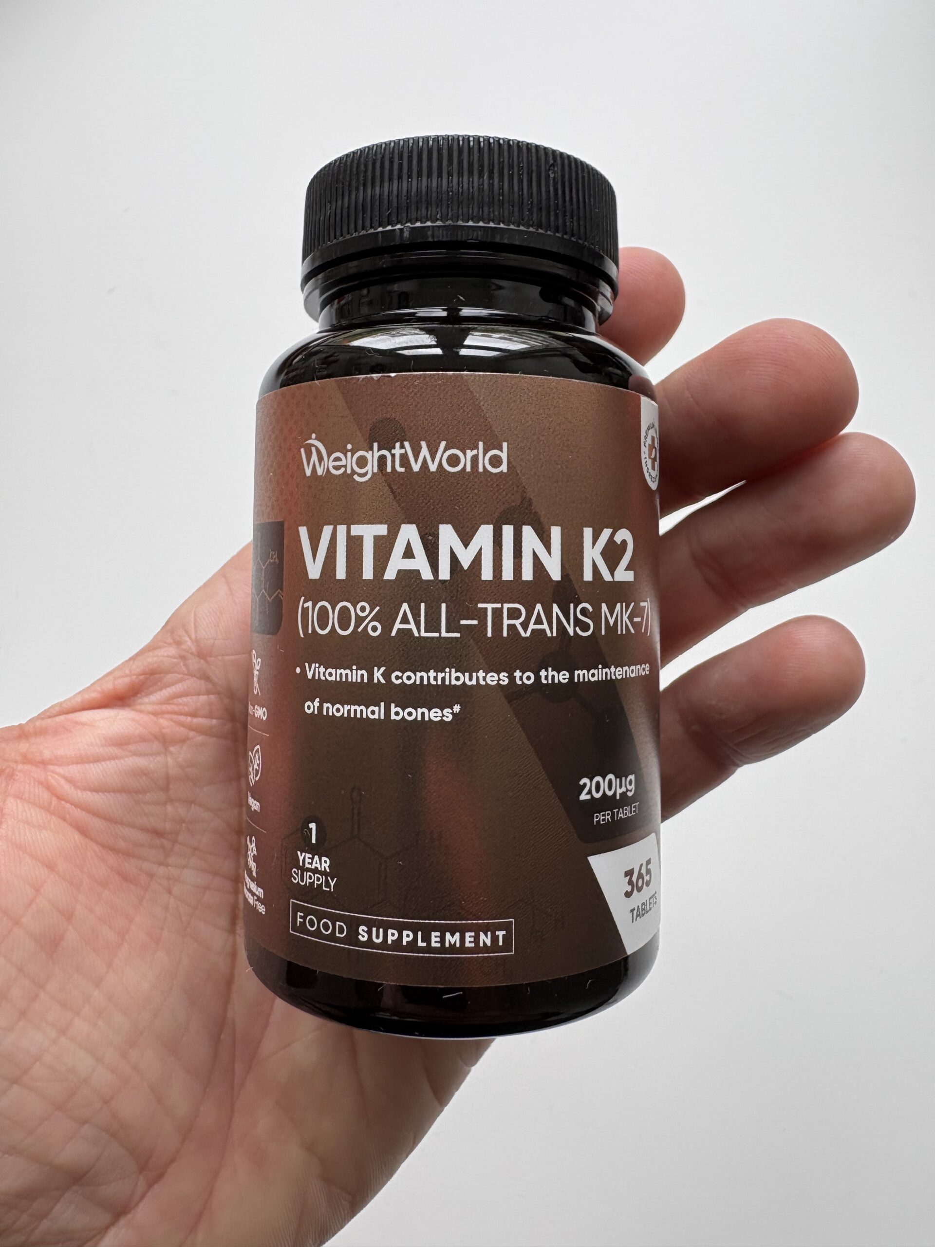 WeightWorld K2-Vitamin giver dig en høj dosis på 200 mcg K2-vitamin i én nem tablet dagligt. Tilskuddet hjælper med at støtte normal størkning af blodet, vedligeholde stærke knogler og bidrage til et sundt kredsløb. Med 365 tabletter får du et helt års forbrug i én bøtte, og produktet er både vegansk og uden mejeriprodukter. Et stærkt valg for alle, der ønsker at sikre et dagligt tilskud af K2-vitamin.