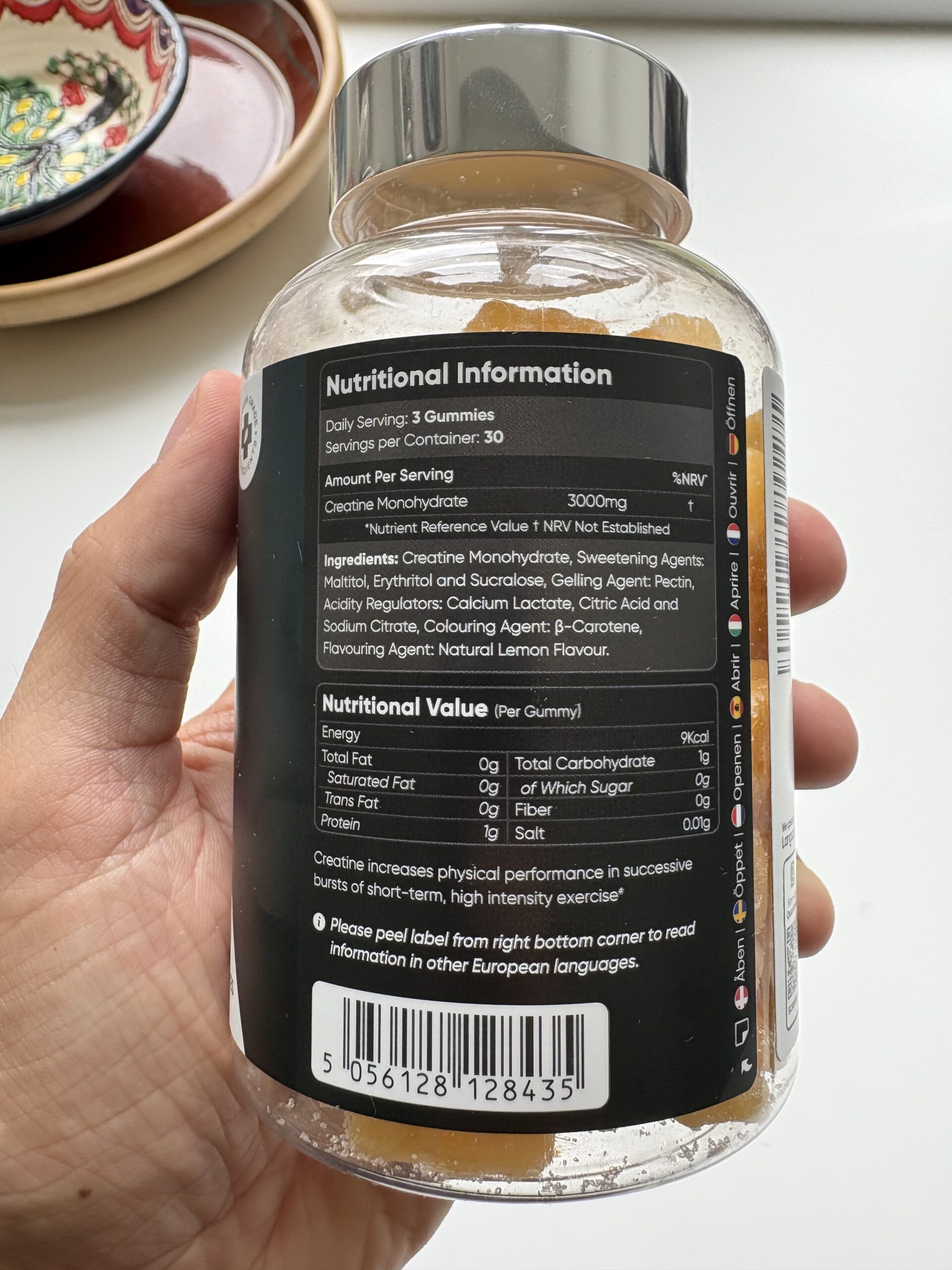 Jeg har taget 3 vingummier om dagen i 3 uger, både på træningsdage og hviledage. Det første, jeg lagde mærke til, var hvor nemt det er: i stedet for at skulle rode med kreatin pulver, som jeg også har taget en del af, både WeightWorld kreatin pulver, men også Bodylab kreatin pulver. Det har også været fint, for det har jeg bare puttet i drikkedunken og så drukket det. Det er mere piller, som jeg helst vil være fri for.