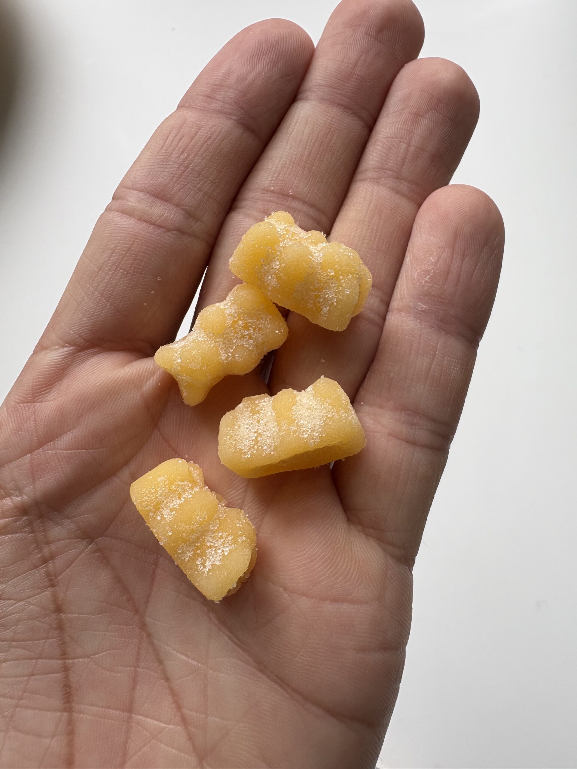 I stedet får du en fast, afmålt dosis i vingummiform. Det gør også, at man aldrig kommer til at tage for lidt eller for meget.